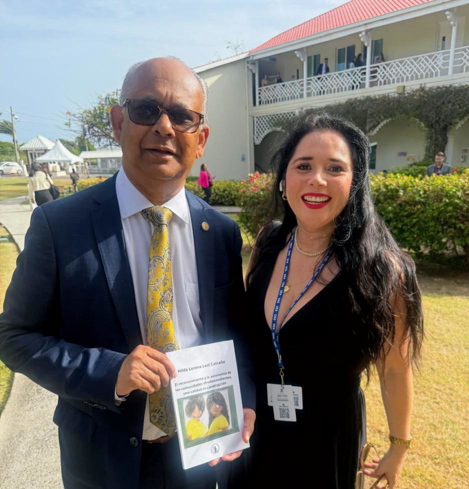 Durante su intervención, Hilda Leal hizo entrega formal al Secretario General de la OEA, Albert Ramdin, de dos documentos clave: